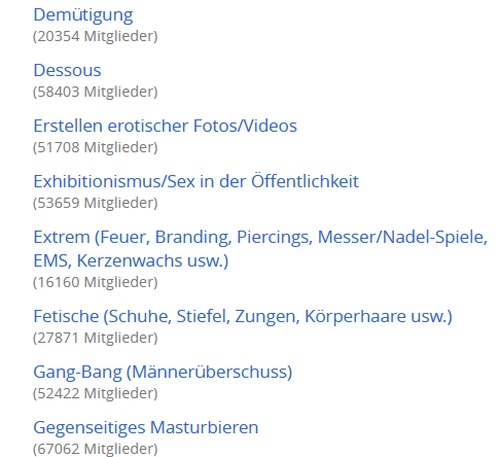 Sie können zudem noch nach einzelnen Fetischen suchen.