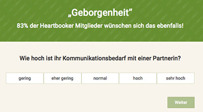 So beginnen also auch Ihre Heartbooker Erfahrungen mit dem Persönlichkeitstest, für den Sie sich eine gute Viertelstunde Zeit nehmen sollten.