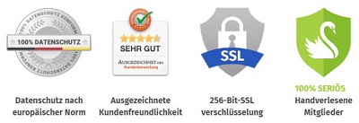 100% Datenschutz auf der SSL-verschlüsselten Seite, Mitgliederprofile, auf die niemand von außen zugreifen kann. Erst nach Ihrer persönlichen Freischaltung kann Ihr Profilbild klar gesehen werden.