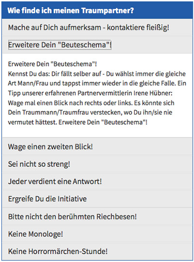 Das große Highlight der Singlebörse ist ohne Zweifel die persönliche Betreuung der Singles durch die Inhaberin Irene Hübner. Ihr liegt der Liebeserfolg jedes einzelnen Mitglieds am Herzen.