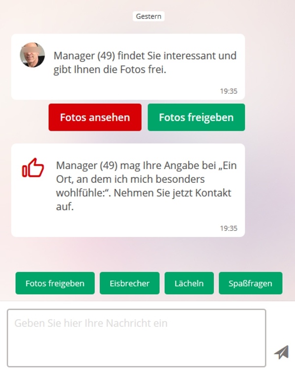 Wenn Sie nichts machen, erhalten Sie monatlich rund 50 neue Vorschläge. Dazu kommen noch Singles, die Ihnen eine Nachricht schreiben oder eine Foofreigabe anbieten.