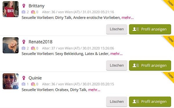 Stöbern Sie doch mal in der Rubrik „Profilbesucher“. Vielleicht entsprechen die Damen dort auf den ersten Blick nicht zu 100% Ihrem gesuchten Typ, aber meist lohnt ein Blick auf das Profil. Diese Chance sollten Sie sich nicht entgehen lassen!