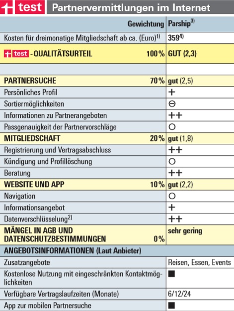 Stiftung Warentest kommt zum gleichen Ergebnis wie wir: Parship ist unter den führenden Anbietern im Bereich Online-Partnervermittlung :).