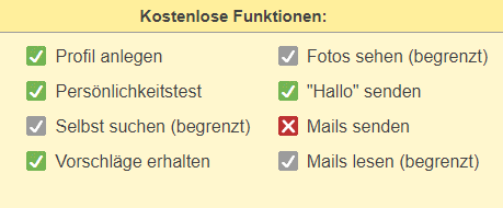 Parship bietet Basis-Mitgliedern eine Reihe von kostenlosen Leistungen und Funktionen für die Online-Partnersuche an.